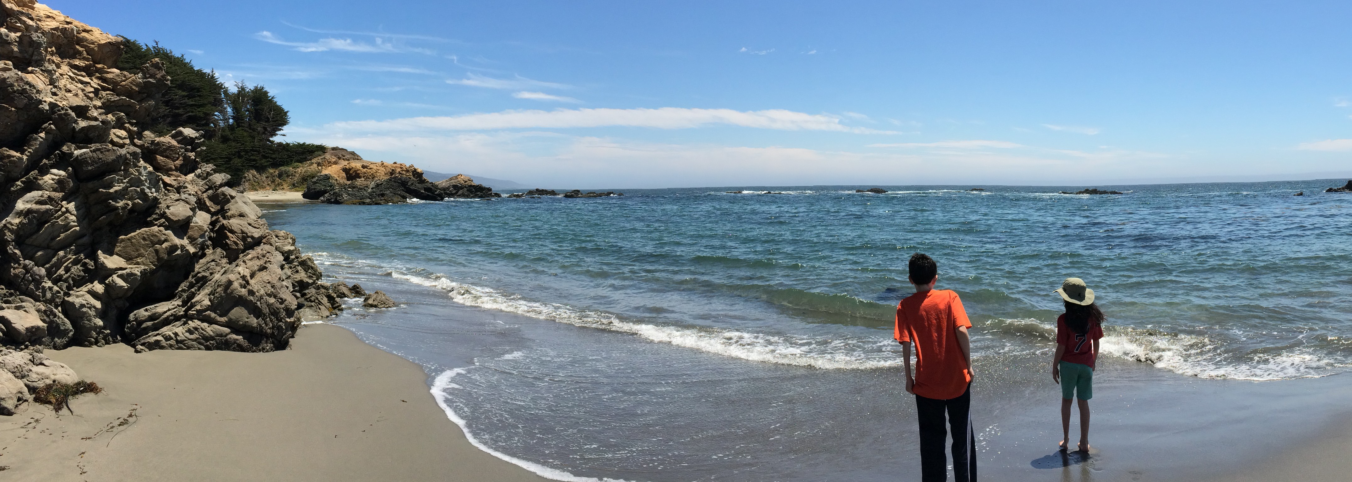 Each day at The Sea Ranch brings new delights and amazements; sage ponds settling into earth, sea otters craning to play with my children, redwoods reaching elegantly for the blue/grey sky, the call of a crow and the loud thunder of sea carving, carving, endless carving into rock. And yet, as I taste salted air on my tongue and feel droplets of mist skim my cheeks, I wonder if I have a right to feel such bliss while my people grab their children and run for shelter, while a continuous social media war reminds me the lessons of anti-Semitism I learned at the fists of others in elementary school. I vacillate between bliss and guilt and fear and serenity and delight and sorrow.
