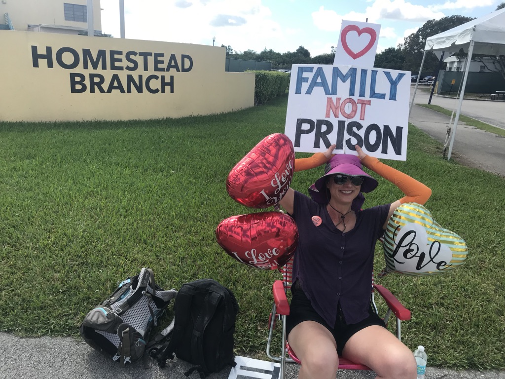 I just returned from spending debate week at the children’s prison. I’m from NH so a group of us had birddogged all the presidential candidates (over & over) to raise their voices against separating families and against putting children in prisons – at all, much less not for months at a time). We specifically pressed them to commit to visiting the detention center when they go to Miami for the debates. Many candidates were sympathetic but few would commit to scheduling a time to visit. I understand that, but I flew down there not knowing whether anyone other than Eric Swalwell and Marianne Williamson would even show up.